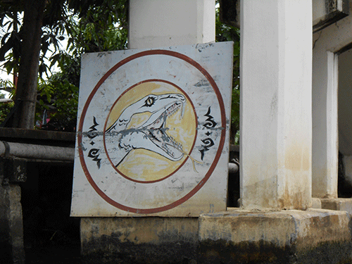 ↑ 旅先で見つけた看板 …ヘビに注意ってことなのかな?