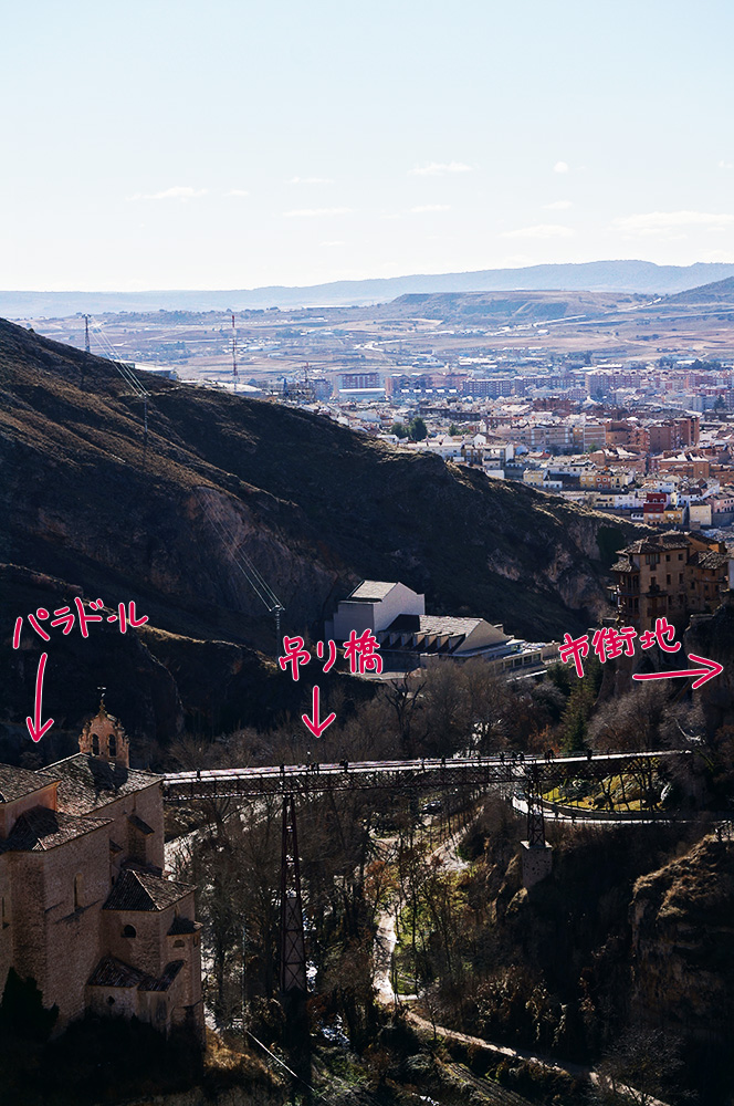 パラドールからマヨール広場のある市街地へ向かうには、その間にある吊り橋を通らなくてはなりません。