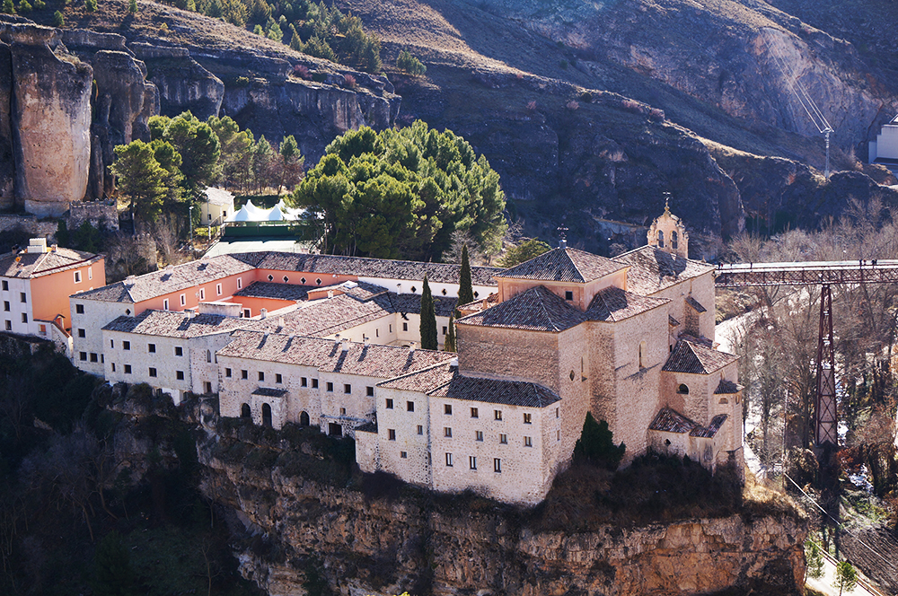 町とパラドールの間にはウエカル川が流れていて、この崖と川が修道院を俗世から隔てる役割をしていたかのように感じられました。